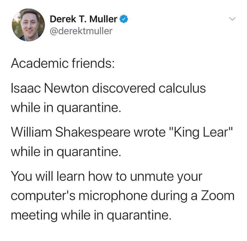 TAKE BREAKS. When having to use the bathroom or go offscreen, BE SURE TO MUTE your mic and turn OFF the video, lest something like this should happen 🤣